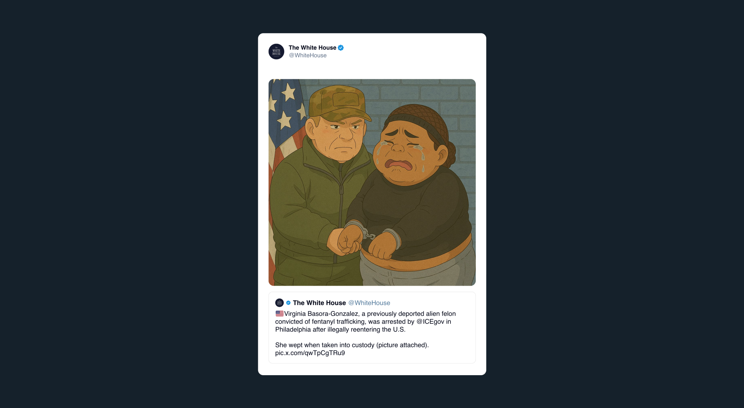 Further sending a clear message that suspected criminals would be met with brutality, the White House X account posted an AI-generated cartoon in the style of Studio Ghibli of a federal agent deporting a woman, who is in tears. Like many other entries on this list, this moment feels notable for what it symbolizes over what it directly or indirectly says.
